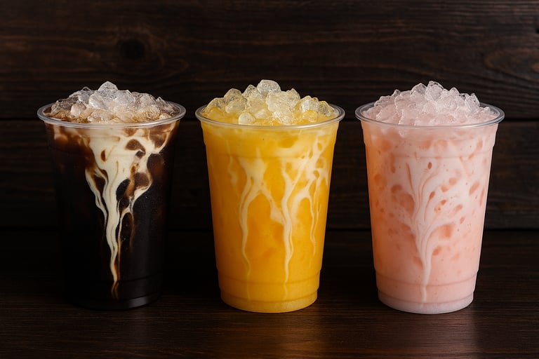 At The Fizz Lab, dirty sodas are our specialty. We take your base soda, run it through our “flavor reactor,” and let you build your own formula with syrups, creams, fruits, and mix‑ins. Whether you want something bold, sweet, smooth, tropical, or totally wild, we’ll help you engineer the perfect sip.